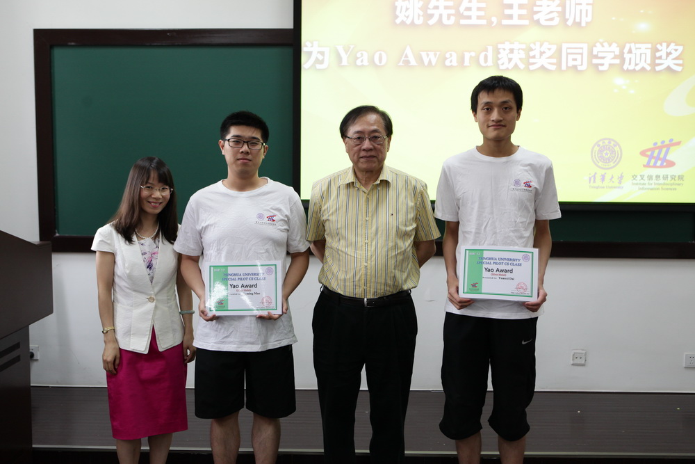 姚先生、王老师与Yao Award二等奖获得者合影(毛杰明、戴元熙)