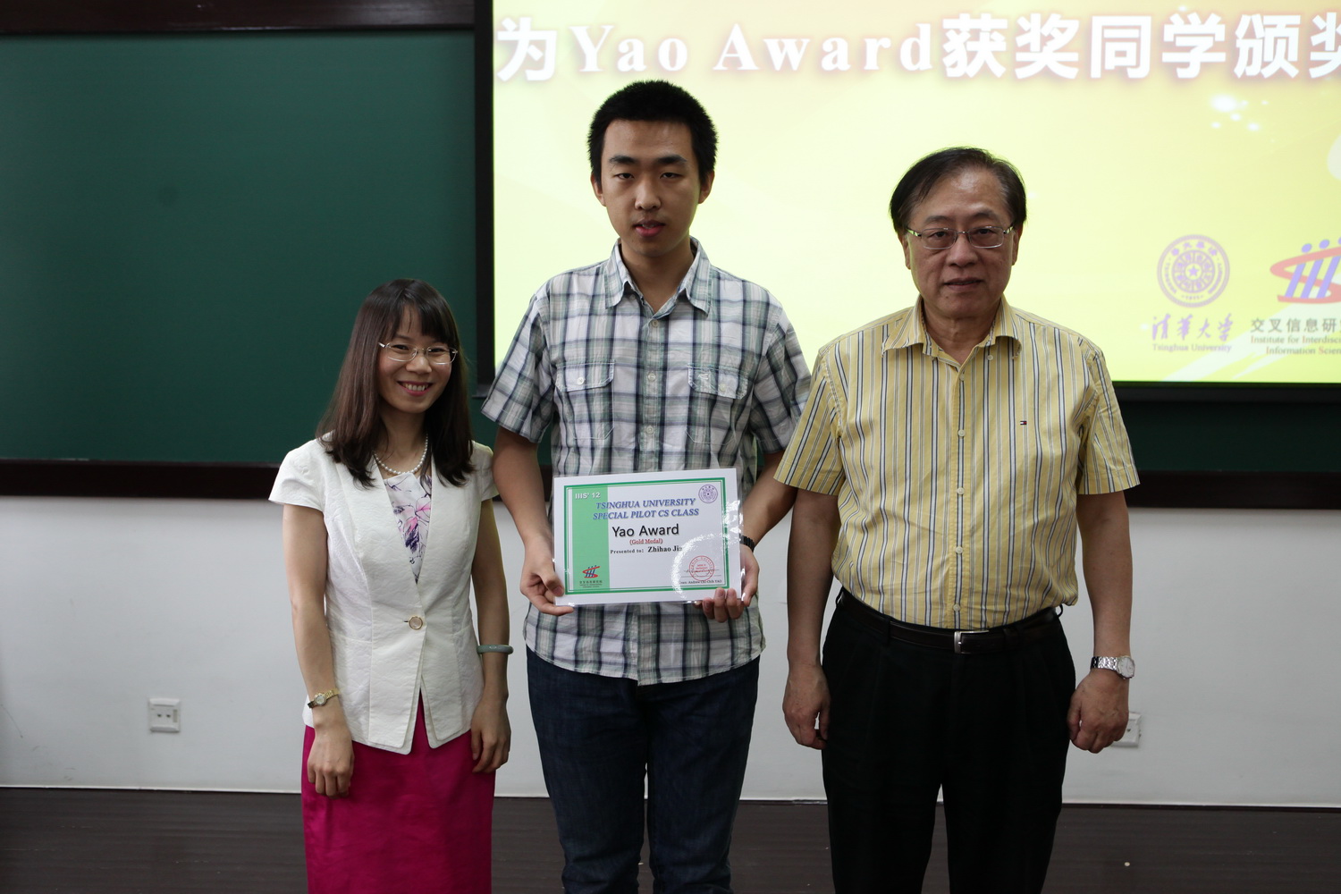 姚先生、王老师与Yao Award一等奖获得者贾志豪合影
