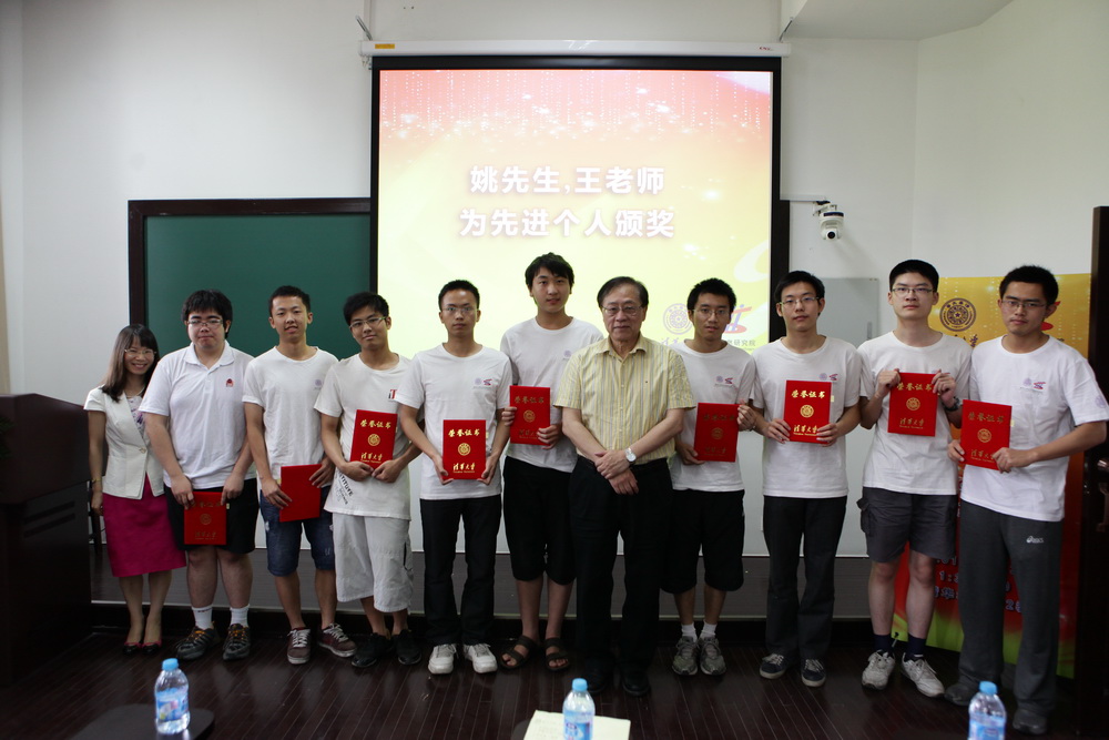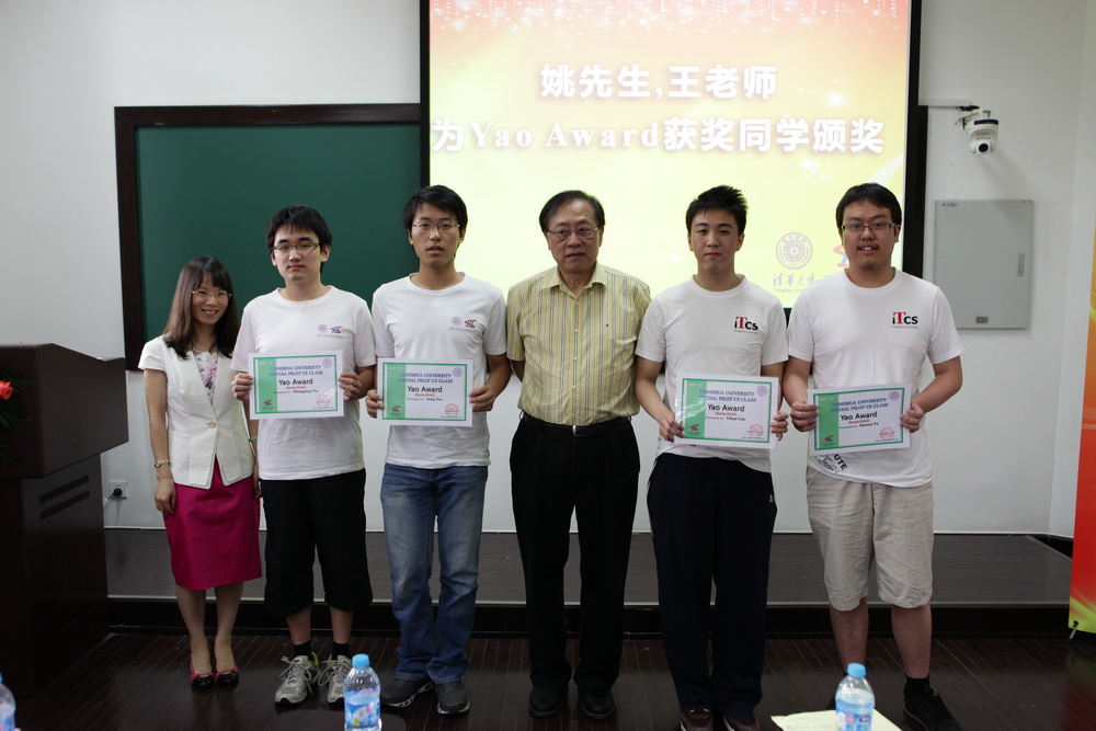 姚先生、王老师与Yao Award优胜奖获得者合影(常惠雯、张昆玮、罗穗骞、艾克、漆子超)