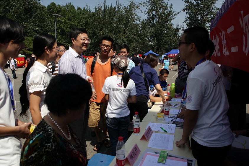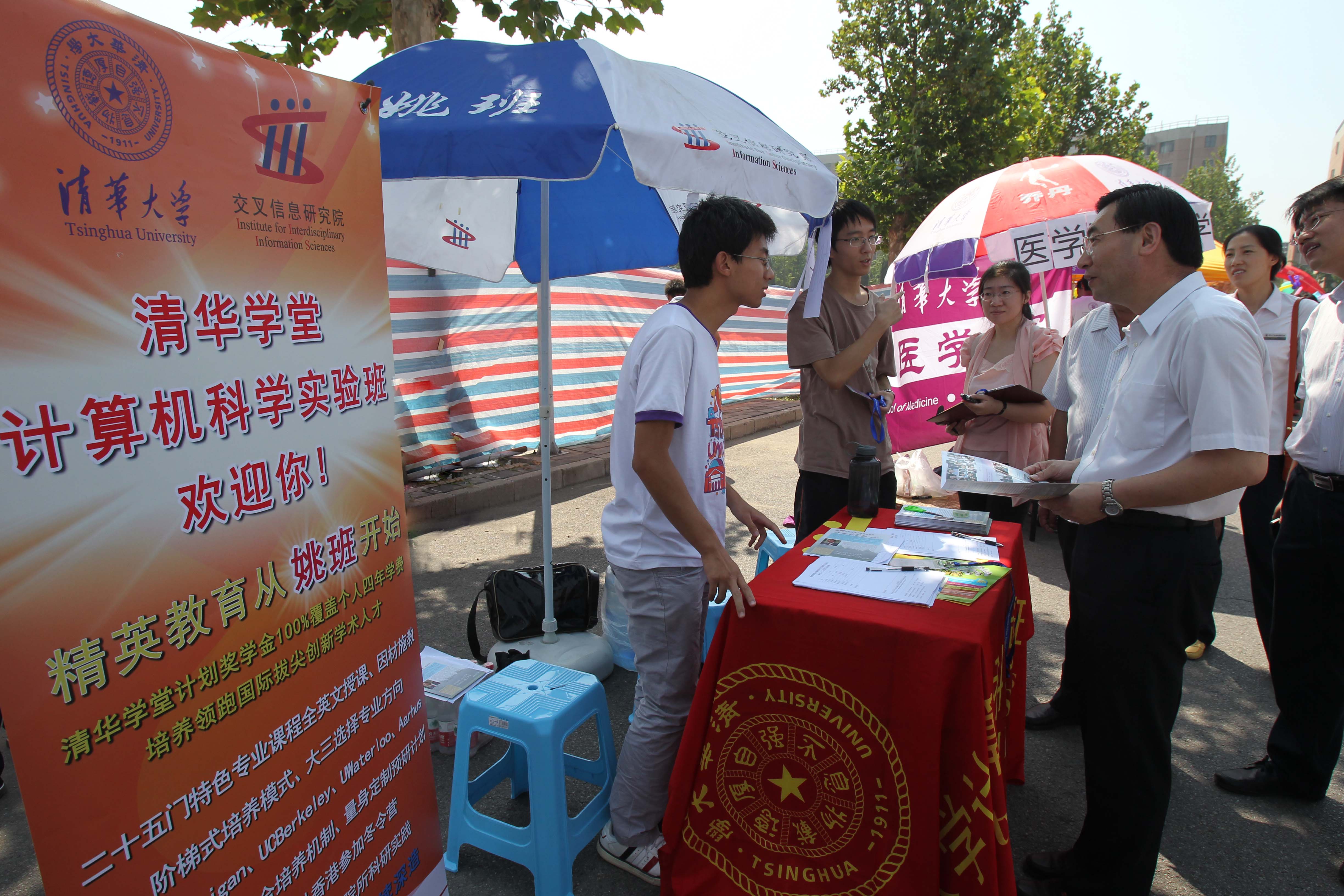 二次招生工作即拉开了序幕,新同学们怀着饱满的热情踏入了清华园的大门。上午10点,校长陈吉宁和校党委书记胡和平等校领导亲赴新生入学报到地点,看望前来报到的新生和家长们,并慰问参与迎新工作的师生员工。在综合体育馆西侧网球场,陈吉宁校长亲切向新同学询问报到情况和体育锻炼情况,当得知我院2012级的张天翼等许多同学都是独自来到学校报到,陈校长非常高兴,他鼓励同学们要继续培养独立生活的能力,进而培养独立思考的人格。在紫荆学生公寓区,胡和平书记来到我院开车漫画