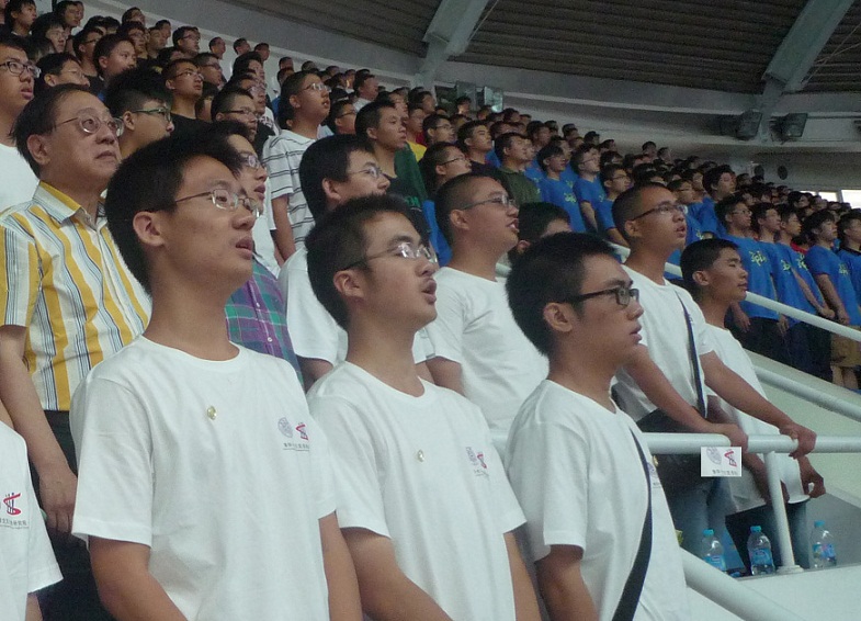 已入学报到的新同学们身着统一院衫列队入场参加开学典礼。开车漫画