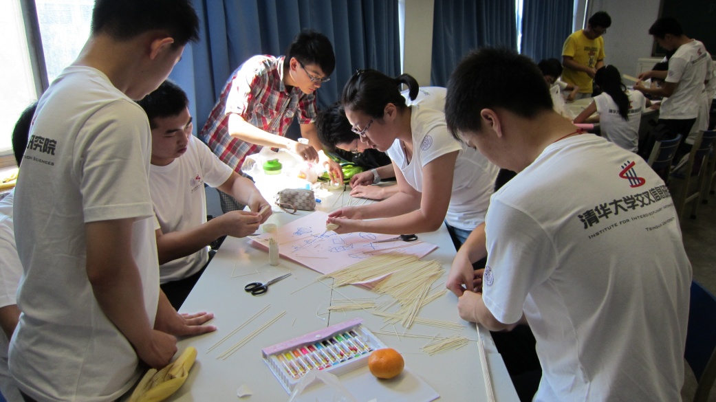 在建塔项目中,各队队员发挥了自己的聪明才智,运用力学知识,合理地利用工具并分配时间,相互之间配合默契,搭起了高高的“面条塔”。