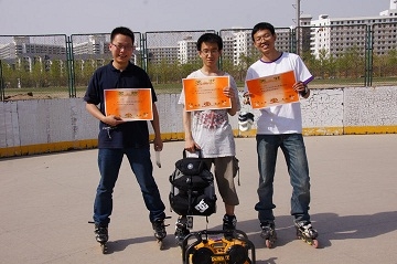 2012年4月14日进行的马杯轮滑比赛中,我院博士研究生张喆同学获得男子平地花式项目第一名。