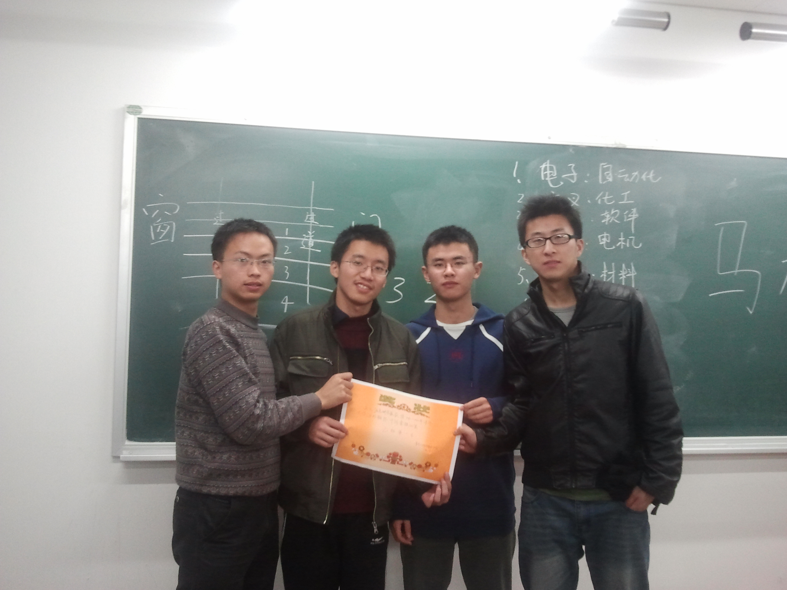 在2011年12月3日和4日进行的马杯围棋比赛中,我院代表队(黄棱潇、何昊青、曾驭龙、殷和政)经过全部七轮比赛后,以总分17分位居乙组第四、甲乙组总排名第七的好成绩!此次比赛中,我院代表队队长计科80班黄棱潇同学还荣获马杯围棋赛的个人第二名。