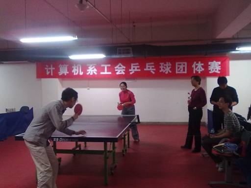 计算机系分工会一年一度的乒乓球团体赛在FIT楼地下一层活动中心拉开帷幕。谈海生、李建、刘妍君(女)三位老师作为参赛队员,梁海胜老师作为裁判员共同代表我院参加了本次比赛。