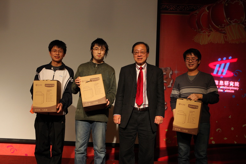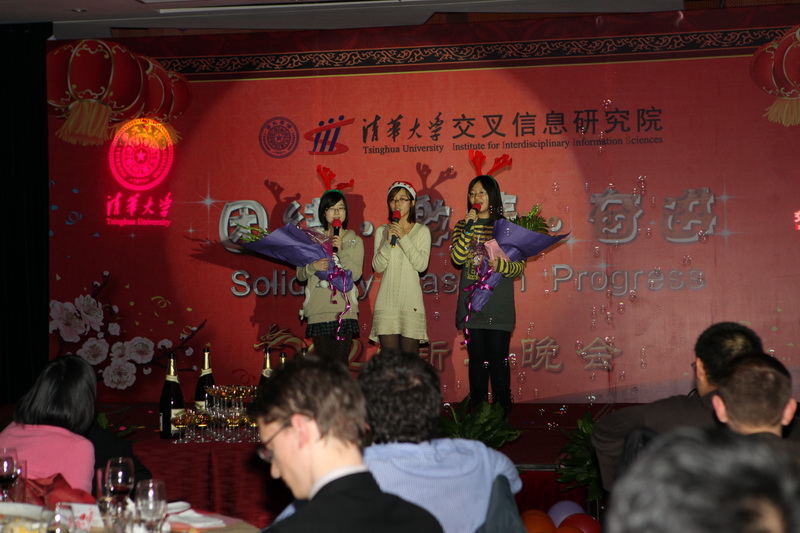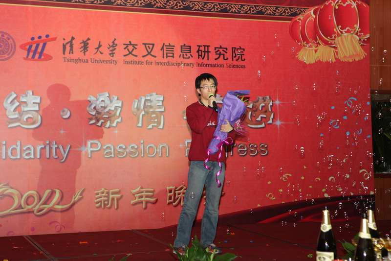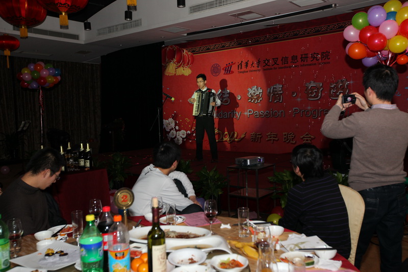 一曲惊艳的暖场印度舞蹈,正式拉开了晚会演出的序幕。师生组合的六人主持团队亮相舞台,为全场带来温暖的新春祝福,也引出了一台精彩纷呈的演出。今年晚会演出最大的特色在于所有演员无一例外都是IIIS成员,包括本科生、研究生和教师,充分展示了全院师生多才多艺的舞台风采。姚先生的惊喜表演,王老师的倾情演唱,以及幸运抽奖、开心游戏,逐一引爆了晚会的每一次高潮。在掌声与欢笑声中,IIIS告别2011年,迈向2012年。2011对IIIS而言,是喜悦的一年,收获的一年,荣耀的一年,团结的一年,奋斗的一年;而即将到来的2012年对IIIS而言,则意味着开启更为不平凡的一年。感谢李响老师的杰作,让我们一起在镜头里铭记IIIS一家人永远的激情与梦想!