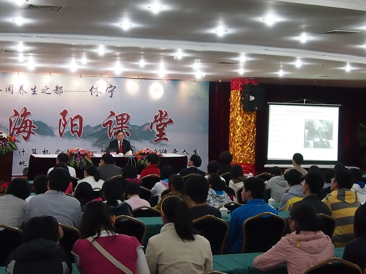 访问期间,姚期智院士做客“海阳课堂”,并作主题演讲:“计算机之父——阿兰·图灵的传奇人生”。休宁中学学生及休宁县各级领导干部共同聆听演讲。