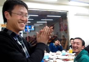 影片结束后,同学们兴致依旧高涨,前往清华西门外的“水木西门烤翅”聚餐,交流各自的观影感想,并为三名本月过生日的同学曾驭龙、曹竹、刘艺成庆祝生日。同学们普遍认为,电影内容健康积极、乐观向上,有助于培养正确的爱情观。电影中的经典台词尤其令大家深有感触。聚餐现场,两位有文艺特长的同学献唱助兴,博得了大家的阵阵掌声,将庆祝男生节活动推向高潮。