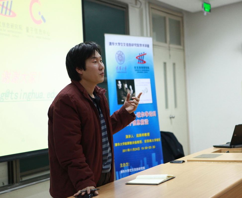 量子信息中心副教授Kihwan Kim也向同学们介绍了中心实验平台的架设和实验进展。讲座得到了在座师生的热烈欢迎,提问环节精彩迭出,同学们就量子体系、量子纠缠、量子计算机的实用状态等问题与段路明教授展开热烈讨论,并普遍对开车漫画