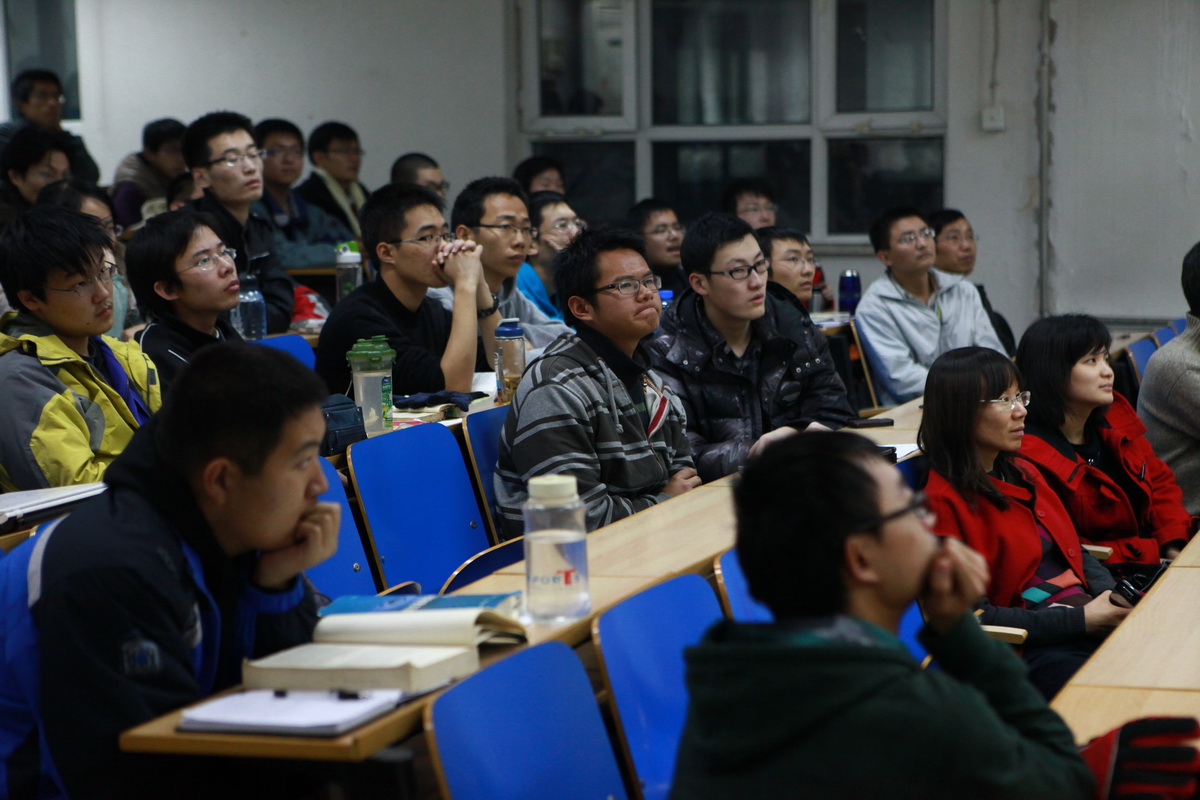 副院长王跃宣教授主持讲座并做招生宣讲,来自北大、清华的学生共同聆听演讲。