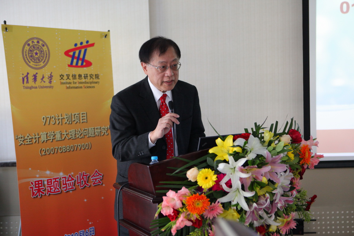 院长姚期智院士。项目分为两个课题:“计算复杂性理论与量子计算的安全计算问题研究”和“密码理论和数论、代数的安全计算问题研究”,围绕安全计算的四个主要方向展开研究。验收会上,姚期智院士针对项目总体情况做了汇报,并与项目课题2负责人王小云教授分别详细介绍了两个课题的研究成果。项目课题组自2007年开展实施研究工作以来,超额完成了原定计划,在开创新数学技术以解决当今计算复杂性的瓶颈级问题,以及量子计算、量子实用密码等方面取得了一系列重大的、有代表性的研究成果,创办并举办了一系列高级别的国际学术会议,人才培养成绩显著。
