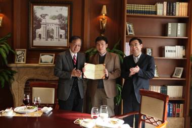 党委书记胡和平为段路明教授颁发聘书。参加聘书颁发仪式的还有副校长邱勇,理论计算机科学研究中心主任姚期智,人事处处长姜胜耀,党办主任王岩,化工系党委书记朱兵,理论计算机科学研究中心副主任王跃宣等。