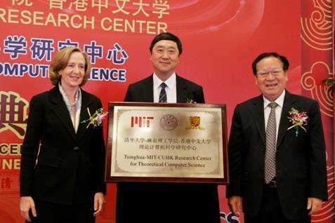三校校长共同签署联合中心协议,并分别致辞表达了对联合研究中心成立的祝贺。清华校长顾秉林教授指出联合中心的成立是三校学者在理论计算机领域合作的重要起点,同时也是三校之间战略合作的重要纽带;麻省理工学院校长Susan Hockfield教授特别强调,联合研究中心整合了一流的师资与生源,毫无疑问将引领国际理论计算机科学领域的研究;香港中文大学校长沈祖尧教授也表达了对联合中心的期待与支持,希望三校深入扩展在理论计算机领域的合作。