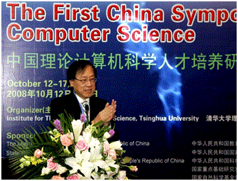 Let me say a few words about this symposium. Two years ago, we started the Institute for Theoretical Computer Science in Tsinghua University for the purpose of promoting theoretical computer science research and also nurturing young talents in this area. And this is very important for Tsinghua University and in fact for China, because at Tsinghua University we have responsibility of spearheading the efforts to elevate the Chinese universities into first-rate research universities.