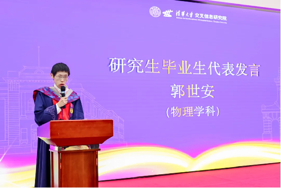 在致辞中,姚期智院长鼓励毕业生说:第一,这是个充满发展机会的时代。交叉信息学科是当今最有活力,发展最快的领域。我们的毕业生都已掌握了前沿知识,也发现了自己最热爱而有天赋的方向,必定能把握机会,创造灿烂的前途!第二,这是个最有挑战性的时代。人工智能等科技正在飞速地改变世界。今天的知识技能,过几年就可能过时。我们必须要保持学生时代的好奇心和学习习惯,在知识上与世界同步进步。第三,要留时间给自己,独立思考。在手机/互联网时代,仍坚持有独立判断能力,不仅成为出色的科技工作者,更成为有道德,有正义感,爱国爱家,像孟子所说“自反而缩,虽千万人,吾往矣”的中国国士!第四,要不忘初心,有理想,有抱负。我在一些国际名校执教多年,你们是我见过的最好、最有创造力的年轻人。IIIS这些年已成为世界级的研究院,你们每一届的同学都功不可没。未来无论在何处,我都会以你们的成就为荣!