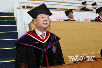 陈吉宁深情地回顾了2013届同学们所经历的具有鲜明时代印记、饱含青春激情的四年大学生活,代表学校向顺利毕业的各位同学表示衷心祝贺,向在同学们成长路上无私支持、默默付出的各位老师和他们的家人致以诚挚的敬意。